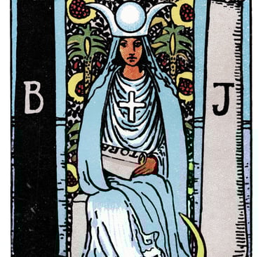 The modern awakening of the High Priestess archetype is one way to visualise this. It is the zeitgeist of reclaiming feminine wisdom, intuition, and creativity—power that has often been marginalized. Just as the pomegranate seeds symbolize the fertility of the womb, they also represent the endless potential of our inner creativity, the energetic “ovum” that births new ideas, visions, and transformations.