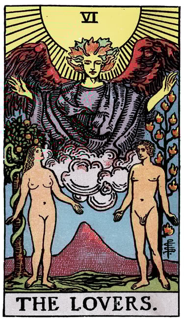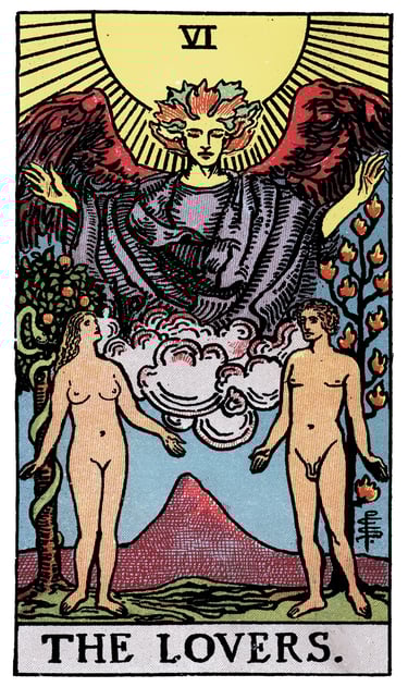 The Lovers depict the integration of these two modes, regulated by a higher intelligence that can hold instinct and reason in conscious dialogue.